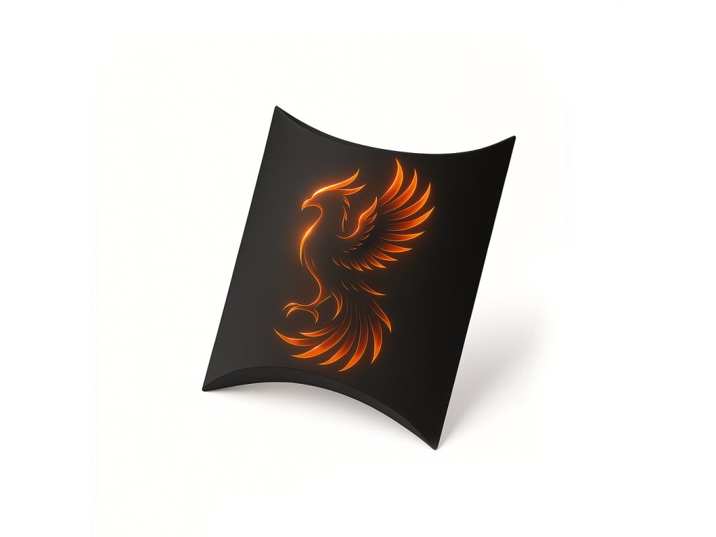 Tento pillow box je víc než jen obal – je to vyjádření energie a nového začátku. Černý matný povrch kontrastuje s jasně oranžovým motivem Fénixe, který jako by zářil přímo z krabičky. Ideální pro dárky, které mají hlubší význam – šperky s příběhem, amulety, ručně vyráběnou kosmetiku nebo designové doplňky.