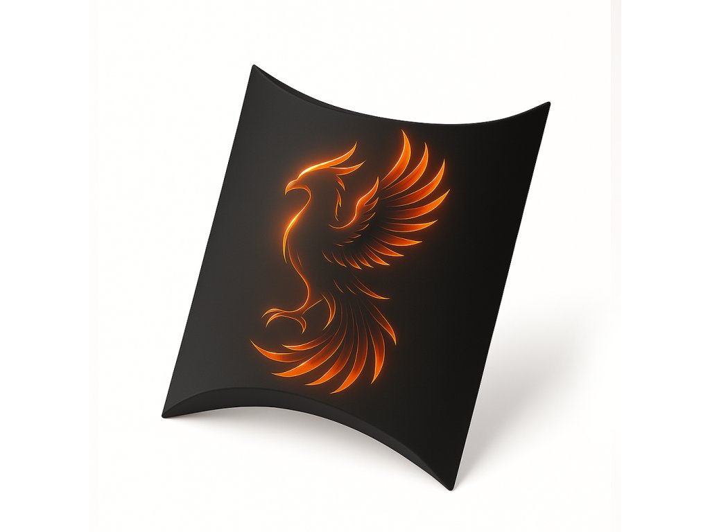 Dárková Designová krabička-polštářek "Fenix" (různé velikosti) KP-D-014 Síla znovuzrození ve vašem dárku – elegantní dárkové balení ve velikostech (L, M)