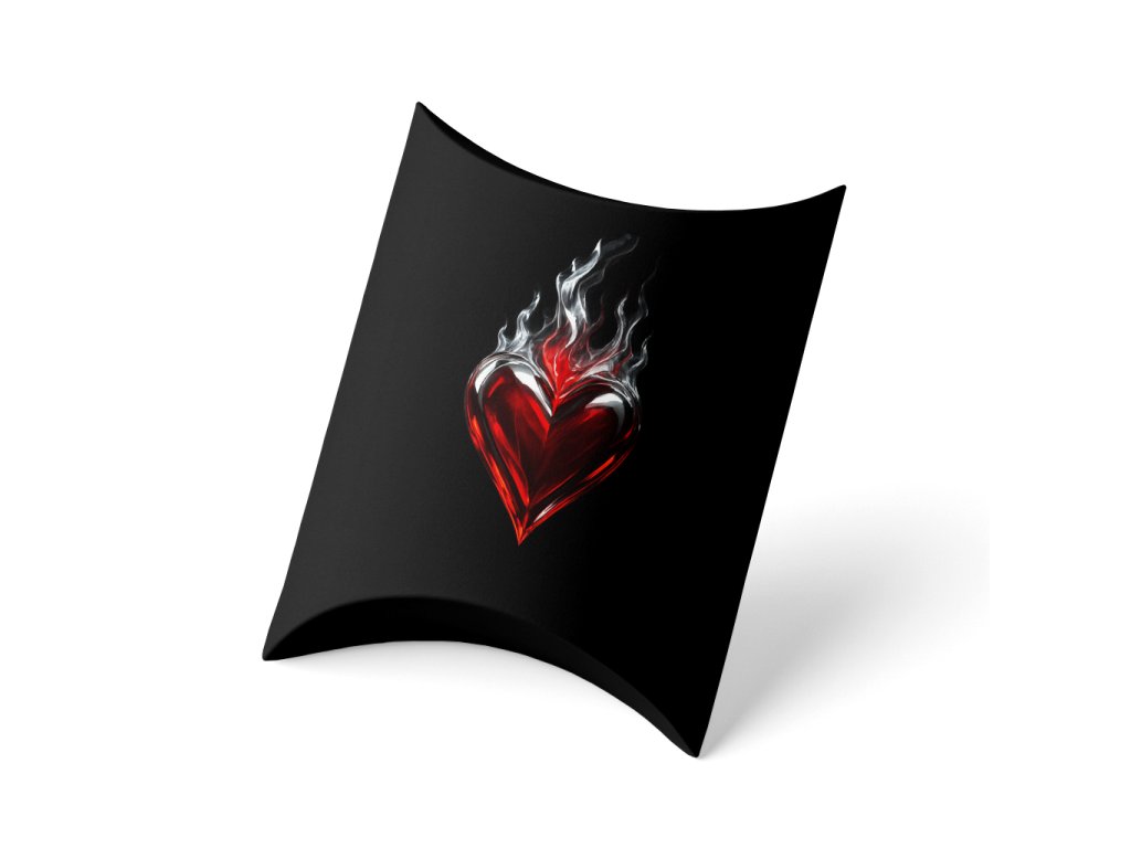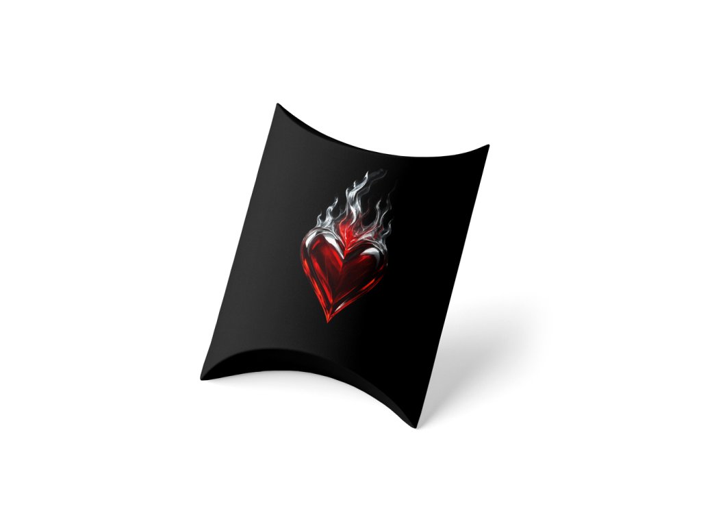 Představujeme Flaming Heart polštářkovou krabičku – design, který okamžitě zaujme. Elegantní černý základ a dramatické červené srdce v plamenech dělají z této krabičky ideální balení pro dárky z lásky, ručně vyráběné šperky, valentýnské překvapení nebo výjimečné osobní dárky.