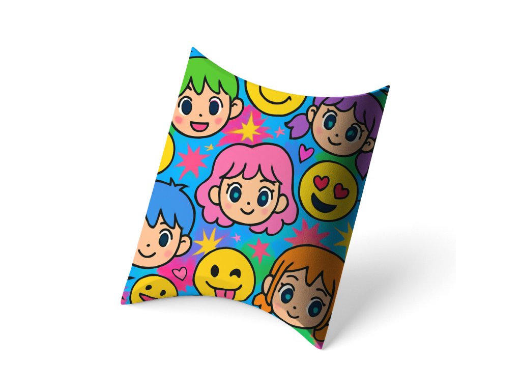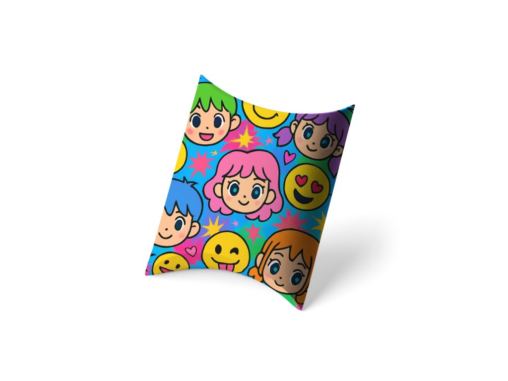 Tato hravá pillow boxka s barevným motivem usměvavých obličejů a emoji promění každý dárek v okamžitou radost. Perfektní pro balení drobných dárků pro děti, narozeninové oslavy, party nebo jako originální obal na sladkosti a malé překvapení.