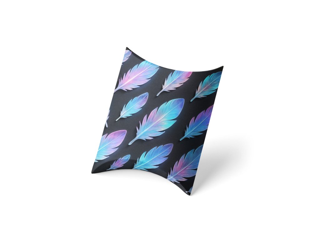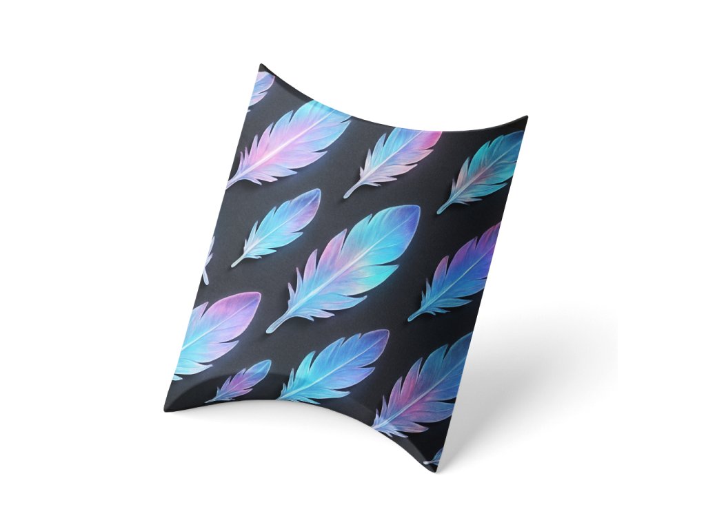 Tato pillow boxka s motivem zářících pírků v odstínech modré, fialové a růžové vnese do vašeho balení pocit lehkosti a kouzla. Skvělá pro dárky, které mají být něžné a stylové – od drobné bižuterie až po ručně vyráběné dekorace.