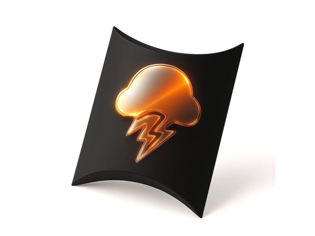 Představujeme Storm Mood polštářkovou krabičku – odvážný design pro ty, kdo chtějí balení, které má sílu. Černý matný základ doplňuje zářící oranžové mračno s bleskem, které působí moderně, energicky a trochu rebelsky. Skvělé řešení pro balení originálních dárků, šperků, tech doplňků nebo ručně dělaných výrobků.