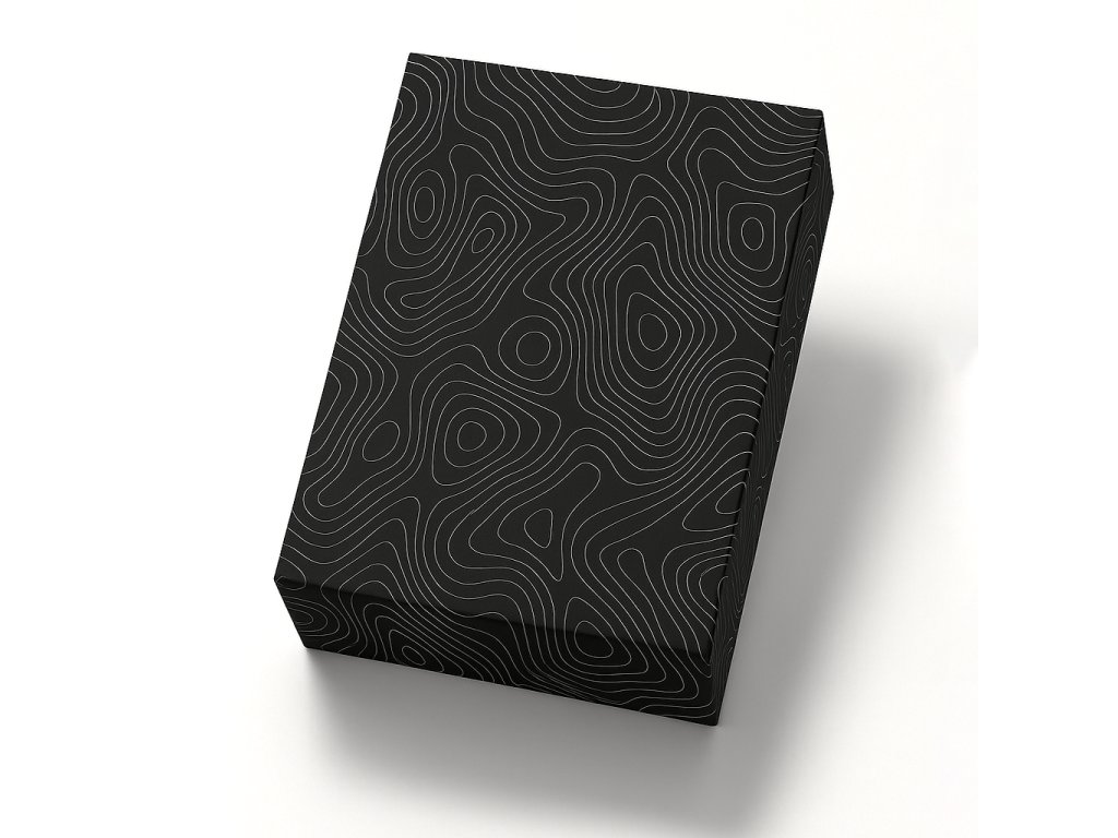 Dárková Designová obdélníková krabička "Geo" KM-OB-D006 Luxusní černá dárková krabička s topografickým vzorem | Kraft House