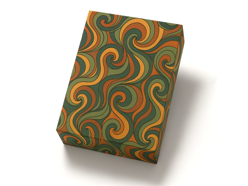 Dárková krabička "Retro" v obdélníkovém tvaru přináší šarm starých časů v moderním pojetí. Barevné, hravé křivky v odstínech oranžové, zelené a hnědé evokují retro náladu a zároveň dodávají balení originalitu. Perfektní pro balení dárků s osobitým charakterem – od módních doplňků až po ručně vyráběné výrobky.