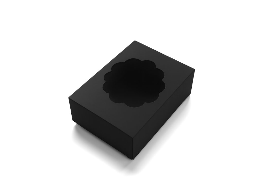 Dárková krabička černá obdelníková s okénkem KM-019BO Luxusní černá krabička s výřezem – různé varianty KM-019BO