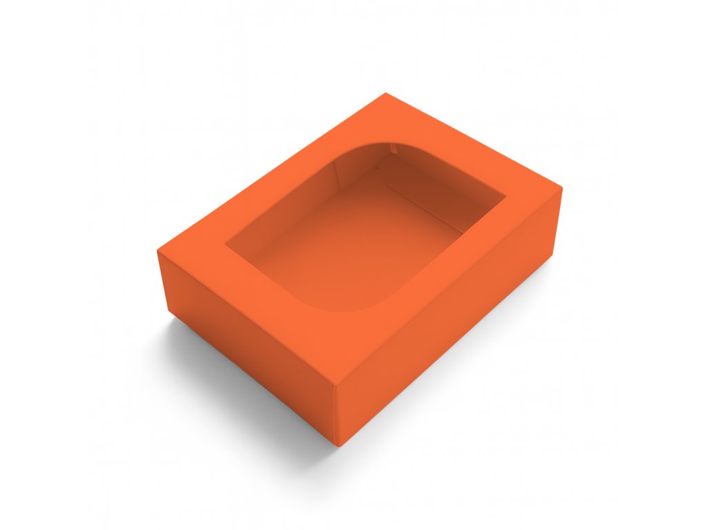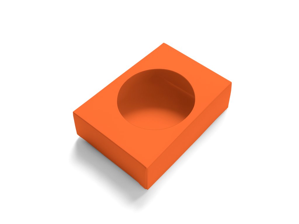 Designová obdélníková krabička v sytě oranžové barvě přináší čerstvost a originalitu. Na výběr máte hned několik tvarů průhledných okének . Perfektní pro balení ručně vyráběného mýdla, svíček či drobných dárků, kdy se produkt krásně ukáže už na první pohled.