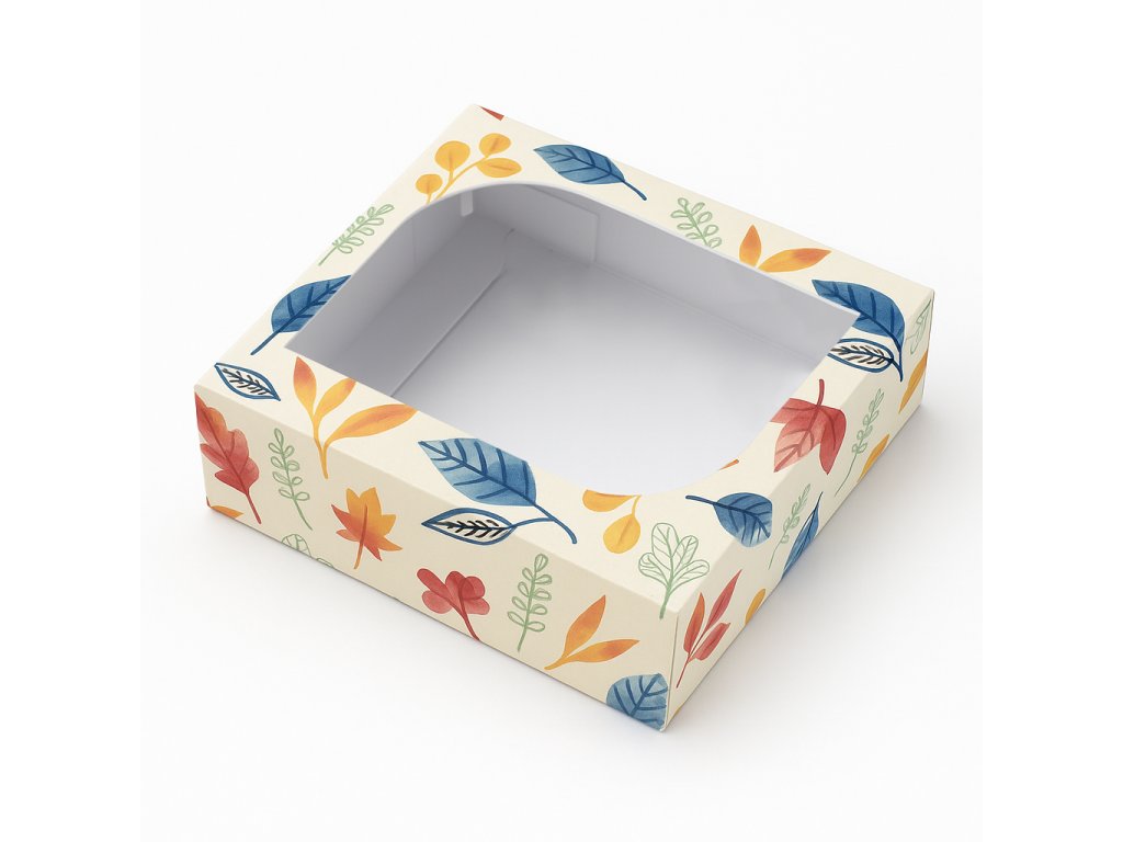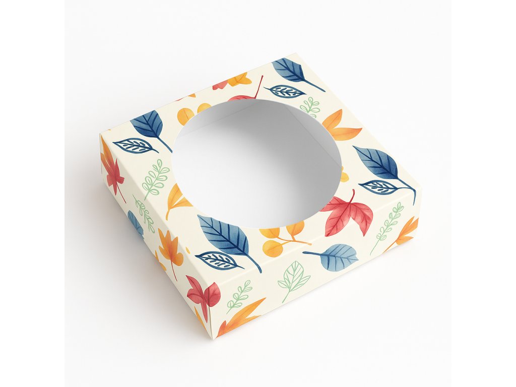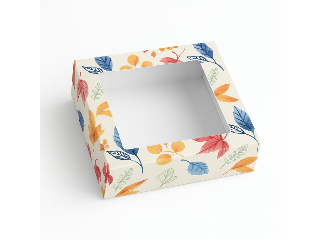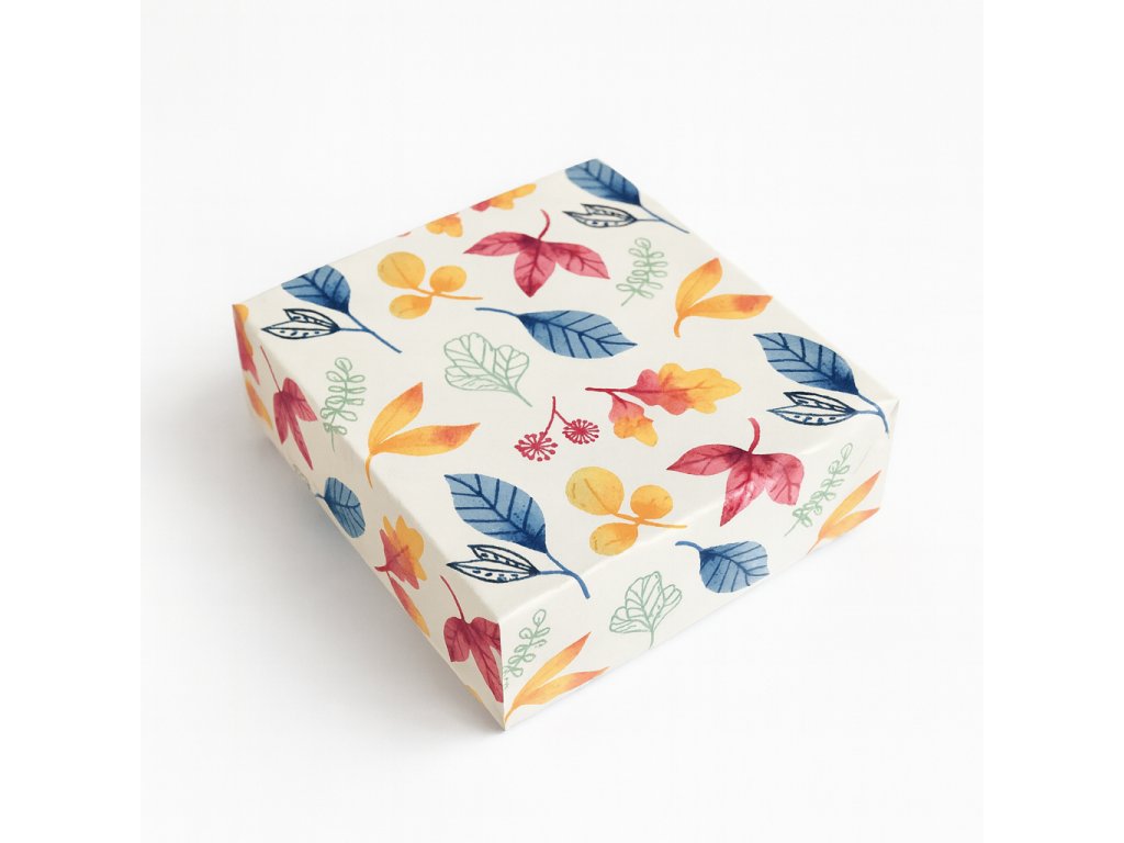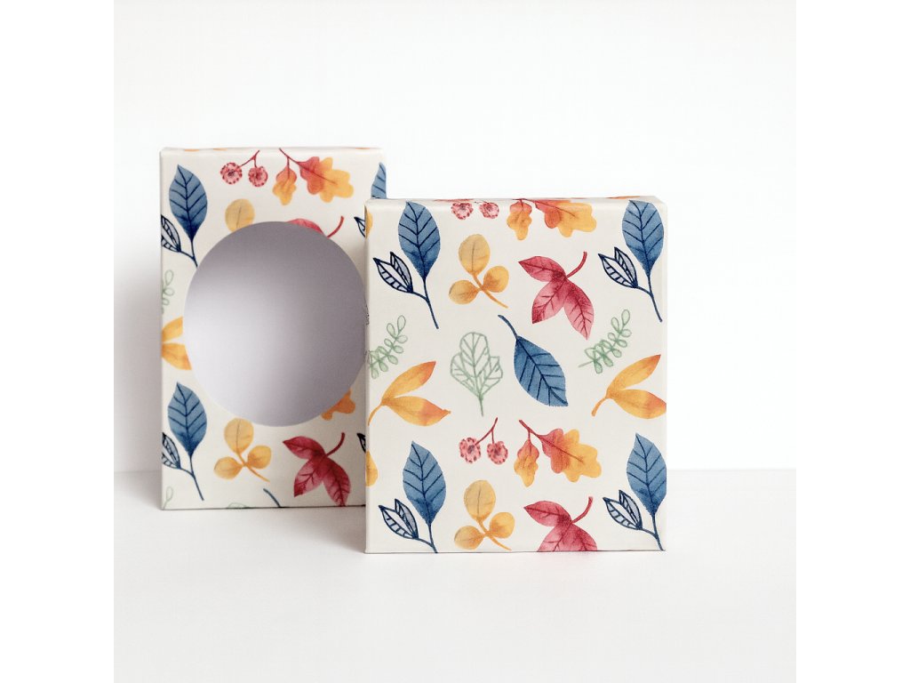 Tato elegantní papírová krabička v krémovém odstínu je ozdobena jemným akvarelovým vzorem barevných podzimních listů – od žlutých a oranžových až po červené a modré tóny. Skvěle se hodí pro balení přírodní kosmetiky, ručně vyráběného mýdla, svíček, drobných suvenýrů či sladkostí. Díky svému přírodnímu vzhledu a jemnému designu dodá vašim dárkům originální a útulný šarm.