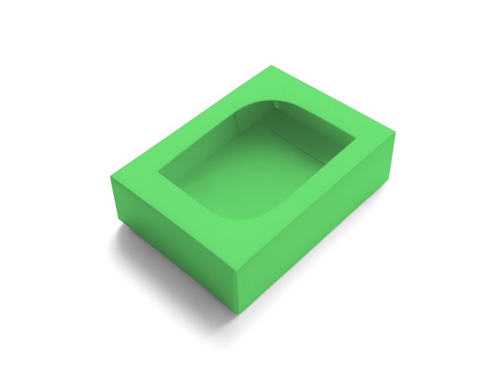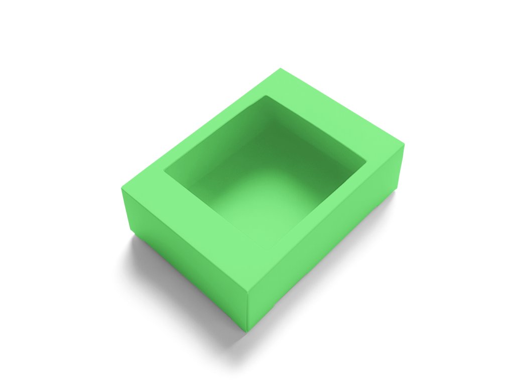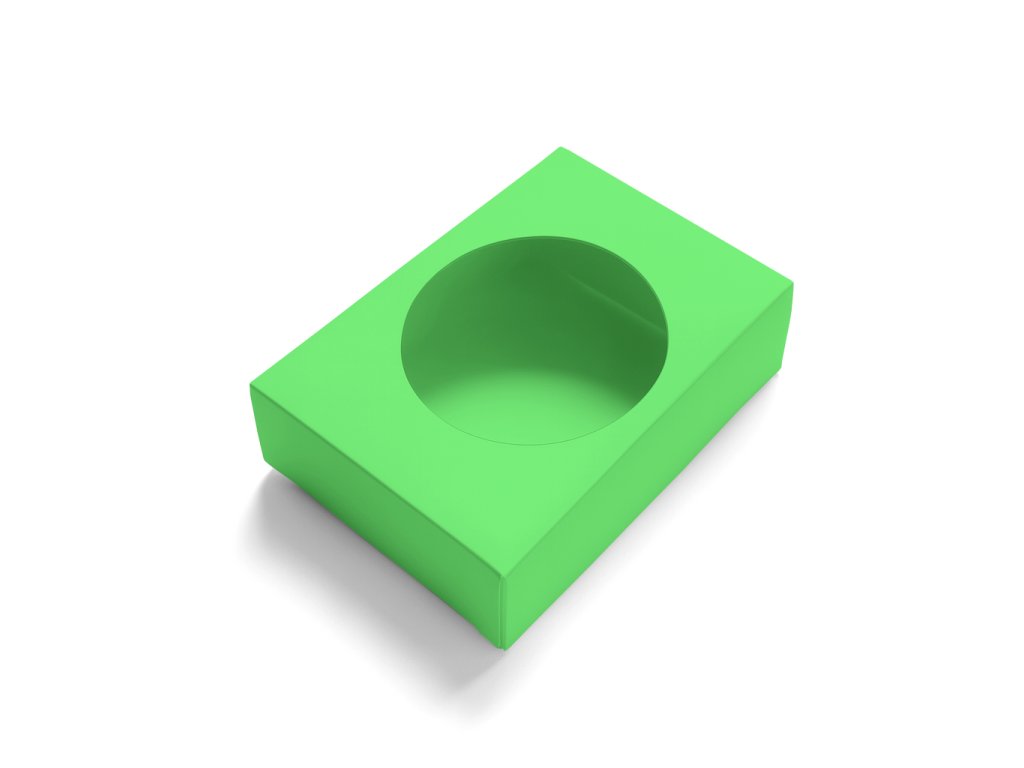 Designová obdélníková krabička v sytě zelené barvě přináší čerstvost a originalitu. Na výběr máte hned několik tvarů průhledných okének . Perfektní pro balení ručně vyráběného mýdla, svíček či drobných dárků, kdy se produkt krásně ukáže už na první pohled.