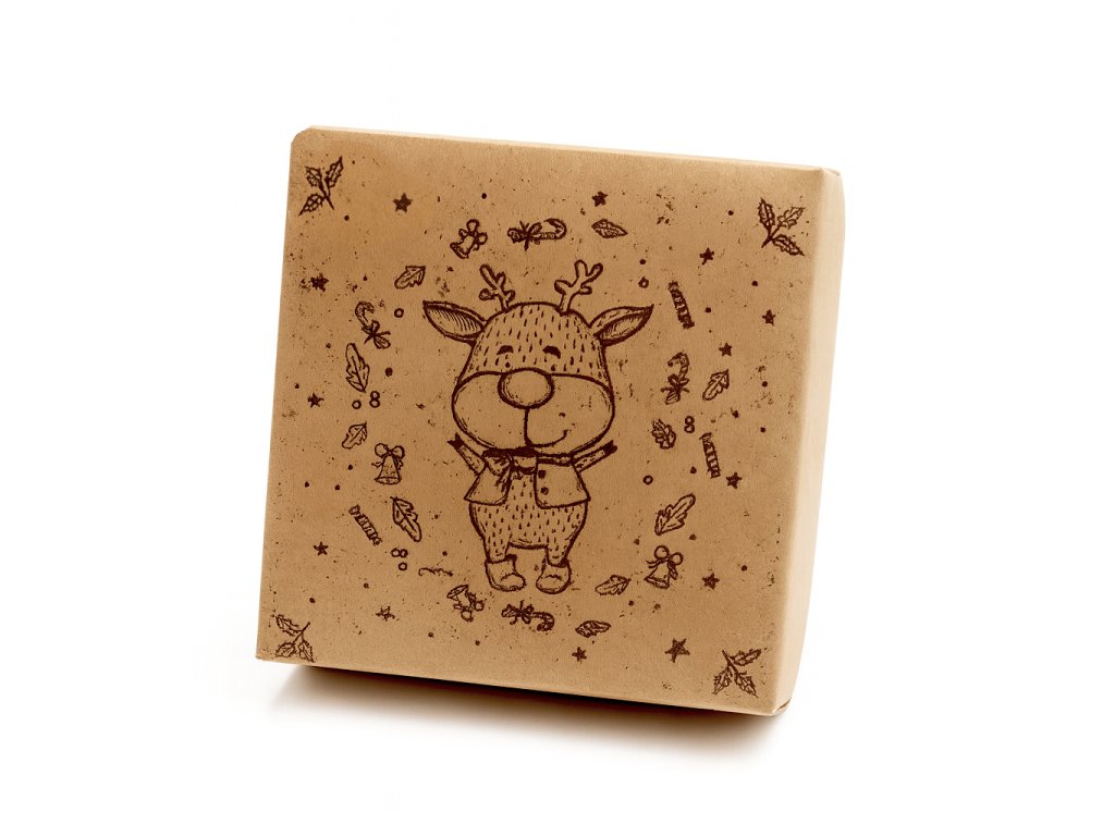 Dárková kraftová čtvercová krabička Zimní Radosti KM-KR-007 Zimní Radosti – Kraftová dárková krabička se sobem | Vánoční balení dárků