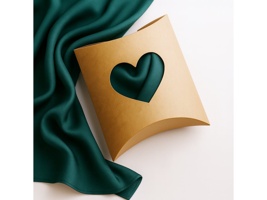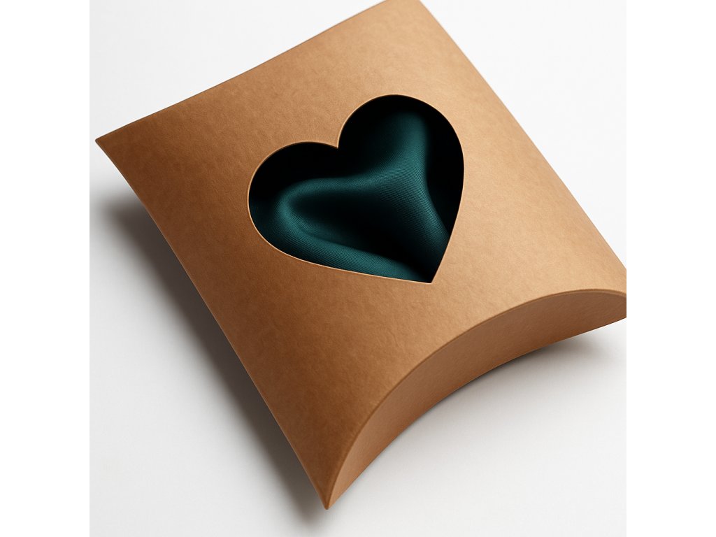 Naše kraftová krabička ve tvaru polštářku s romantickým výřezem srdce je dokonalým způsobem, jak stylově zabalit malé dárky, přírodní kosmetiku, šperky nebo ručně vyráběné svíčky. Díky svému designu je také perfektní pro balení jemných textilních výrobků – šátků, kapesníků, twilly stuh nebo malých doplňků. Vyrobena z kvalitního kraftového papíru, je pevná, ekologická a 100% recyklovatelná. Minimalistický vzhled podtrhne osobitost vašeho dárku.