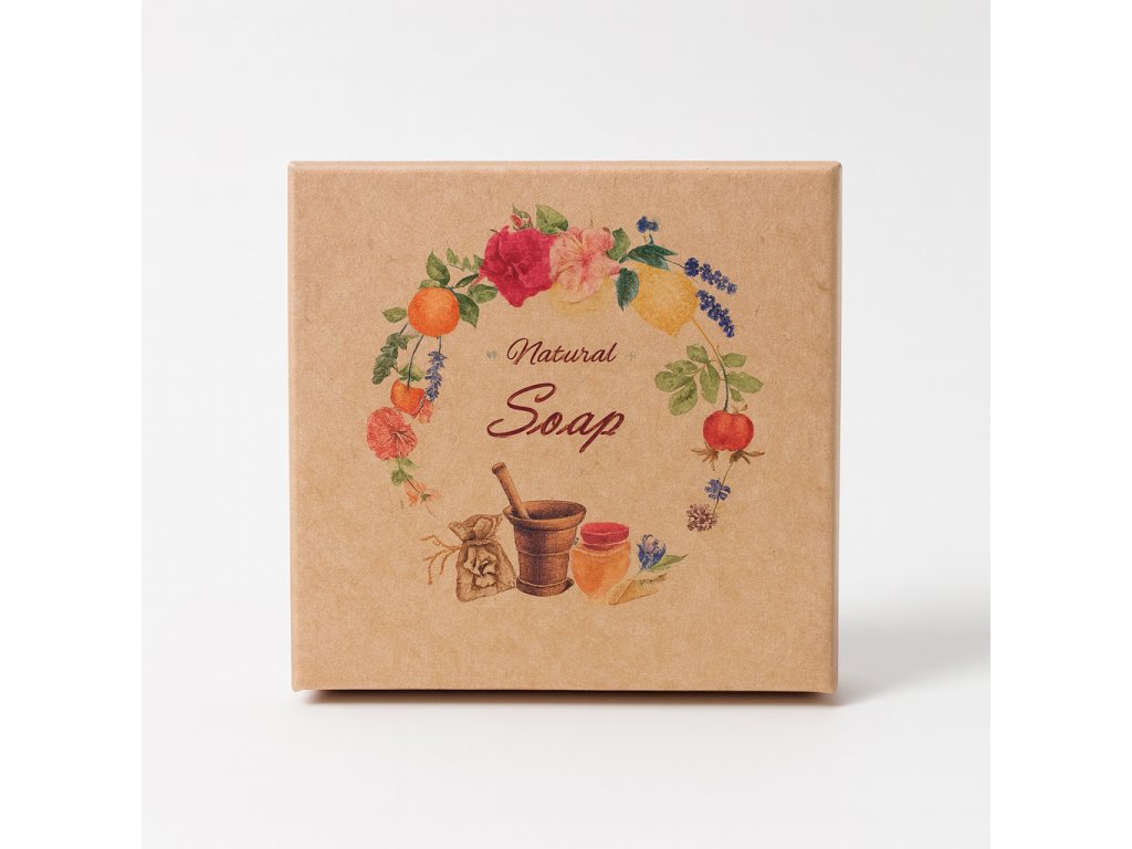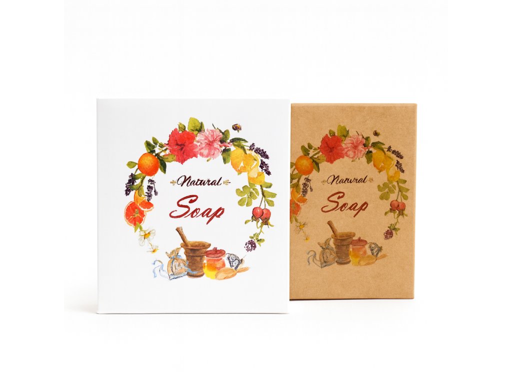 Dárková kraftová nebo bílá čtvercová krabička Soap Garden - Bylinková Romance KM-KL-009 Soap Garden – Dárková krabička na přírodní mýdlo | Bílá nebo kraftová