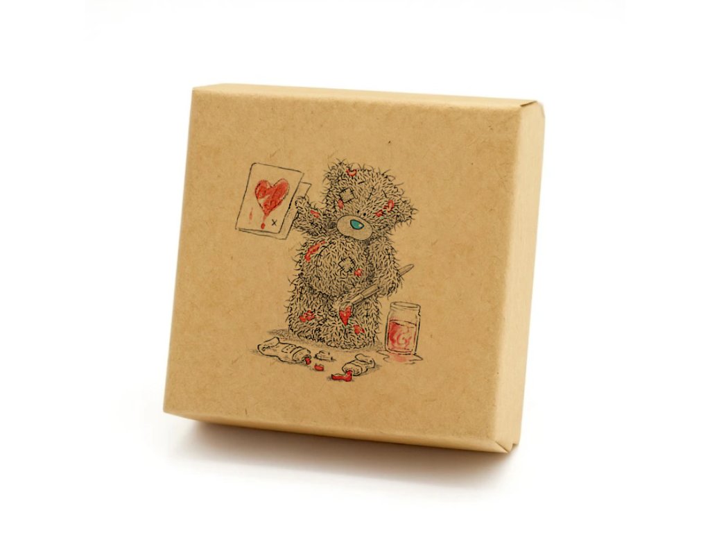 Dárková kraftová nebo bílá čtvercová krabička - Medvídek se srdcem Dárková krabička Medvídek se srdcem | KraftHouse