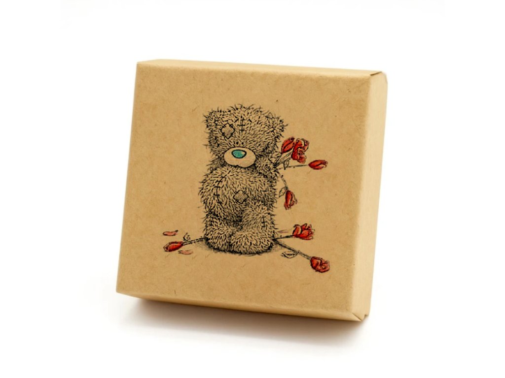 Dárková kraftová nebo bílá čtvercová krabička s medvídkem a růžemi Dárková krabička s medvídkem a růžemi | KraftHouse