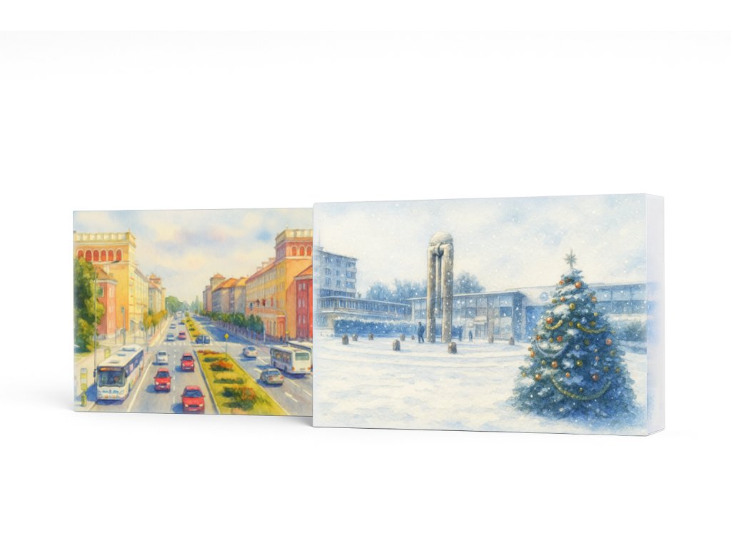 Objevte atmosféru Havířova prostřednictvím originálních dárkových krabiček s autorským akvarelovým designem.