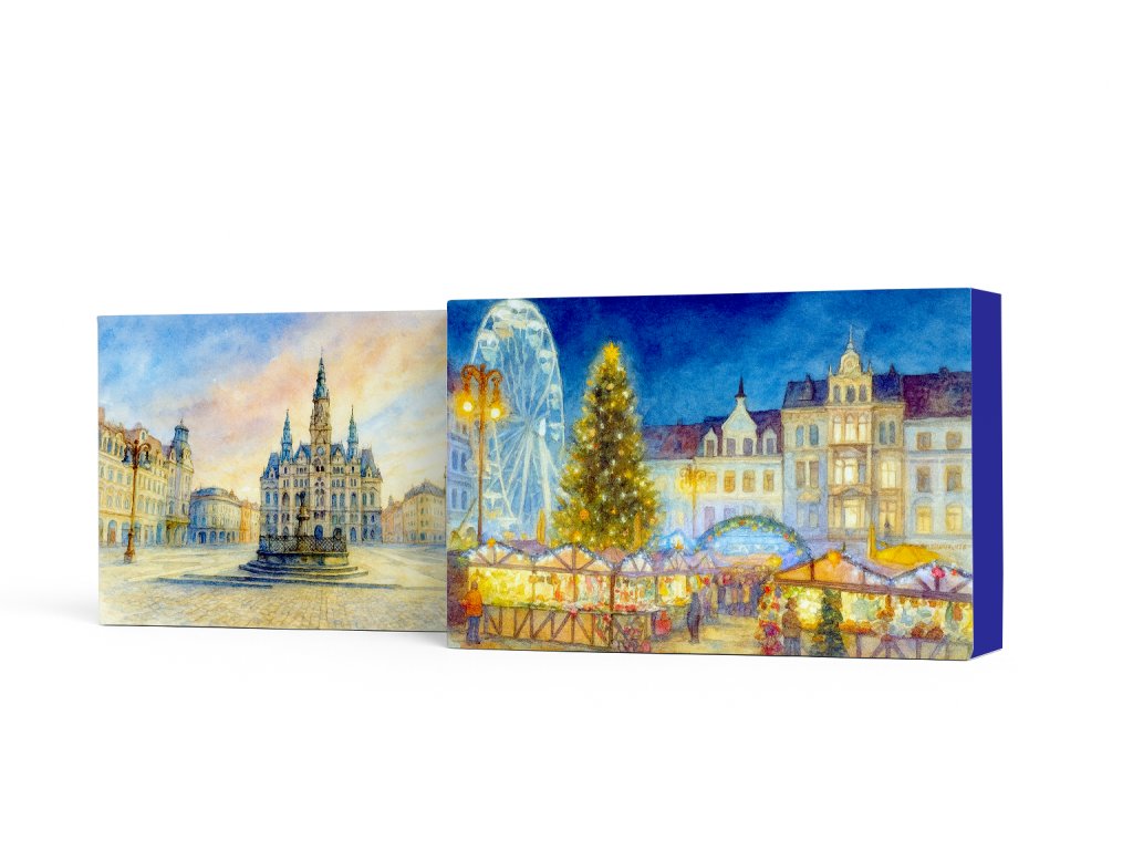 Objevte jedinečnou atmosféru Liberce prostřednictvím elegantních dárkových krabiček s originálním akvarelovým designem.