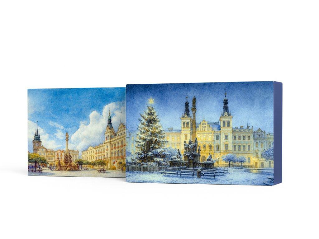 Dárkové krabičky Pardubice | Letní a zimní edice s akvarelovým motivem, sada 2 ks Dárková krabička Pardubice – akvarelový motiv, letní & zimní edice, ruční výroba