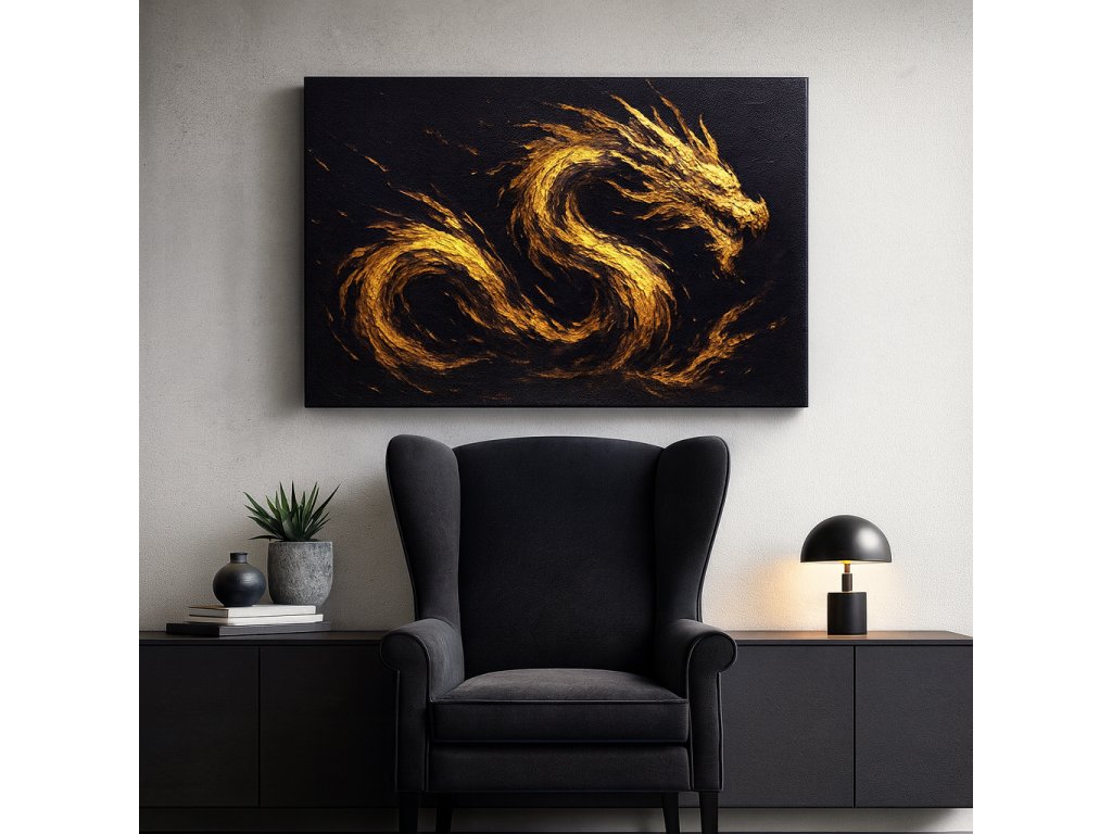 Zlatý Ohnivý Drak – obraz na plátno Premium Canvas | 100% bavlna | Různé rozměry Zlatý Ohnivý Drak – obraz na plátno Premium Canvas | 100% bavlna