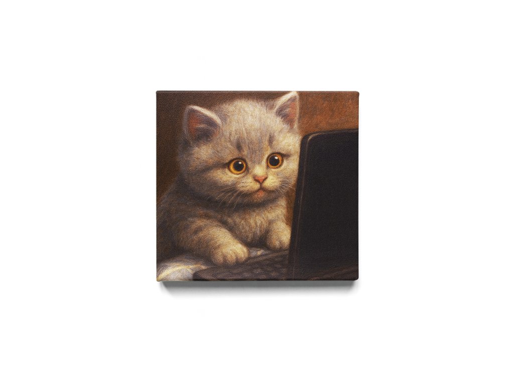 Obraz IT Koťátko – Programátor na Plátně spojuje jemnost kočičího světa s moderním digitálním životem. Detailní kresba, teplé barvy a výrazné oči vytvářejí neodolatelný motiv, který přitahuje pozornost a přináší úsměv.