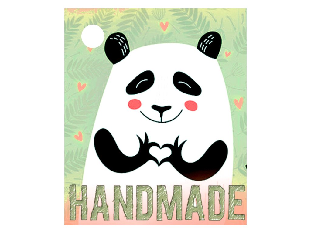 Kartička-visačka „Handmade“ s pandou KV-006, sada 6 ks Visačka „Handmade“ s pandou – roztomilá visačka na handmade výrobky, sada