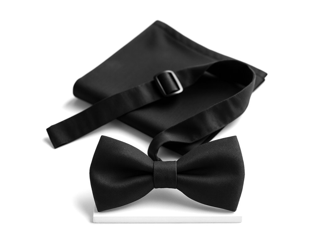 Komplet motýlek a kapesníček Černá Elegance | 100% bavlněný satén Komplet motýlek a kapesníček Černá Elegance – 100% bavlněný satén, unisex