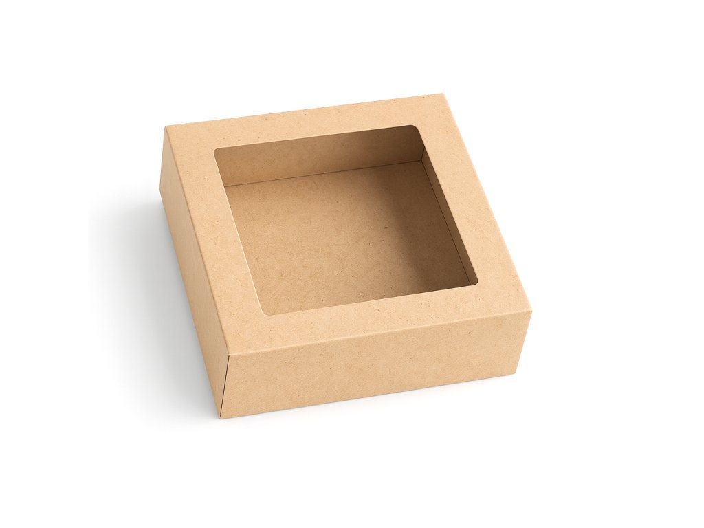 Jednoduchá a elegantní kraftová krabička čtvercová s okénkem z pevného papíru. Ideální pro balení drobných dárků, mýdla, sladkostí nebo firemních produktů. Přírodní vzhled dodává balení ekologický a stylový dojem.