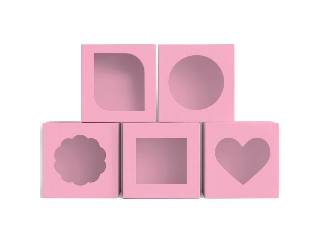 Sada růžových čtvercových krabiček s okénkem | Romantické balení dárků Růžová sada krabiček s okénkem | Romantické balení dárků