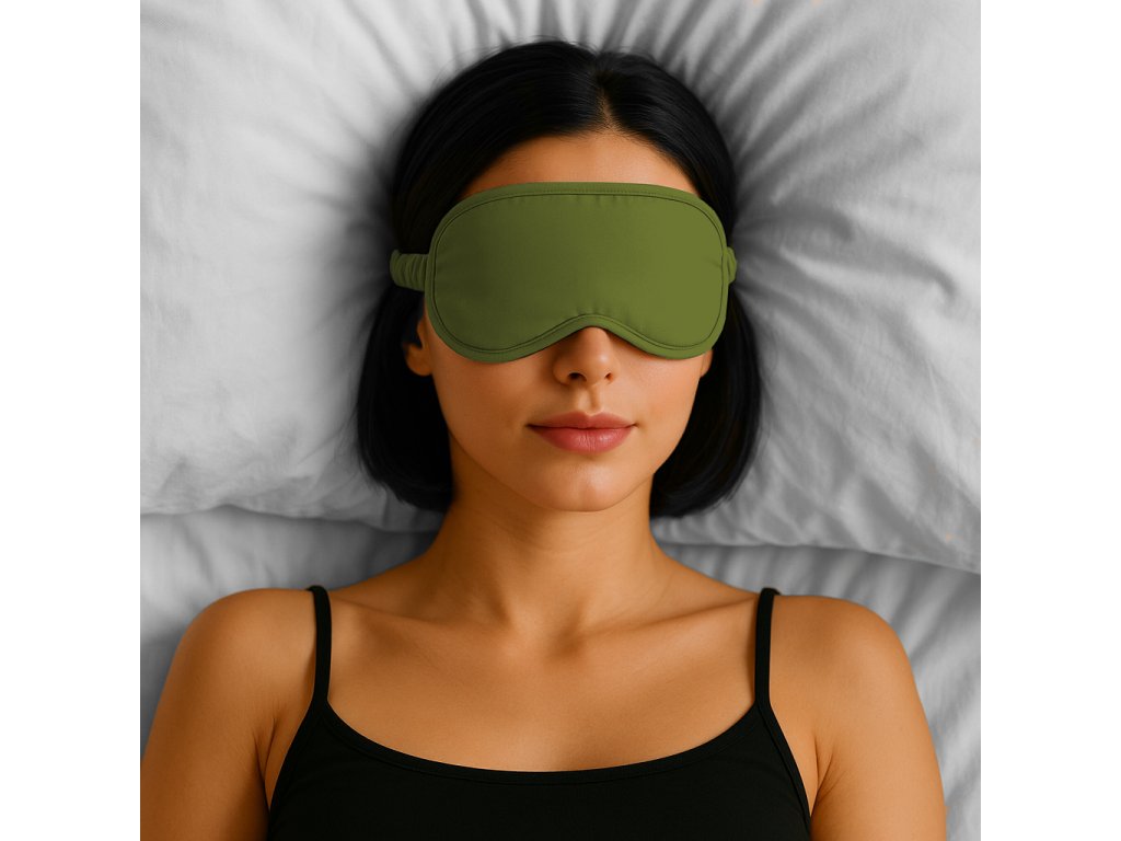 Sleep mask z 100% bavlněného saténu – Luxusní saténová spánková maska Olive Touch Luxusní maska na spaní z 100% bavlněného saténu. Jemná, prodyšná a šetrná k pokožce i vlasům.