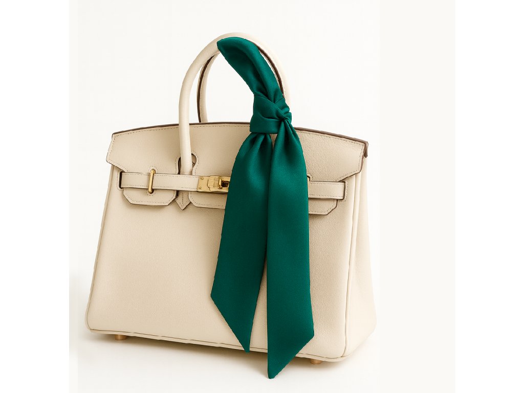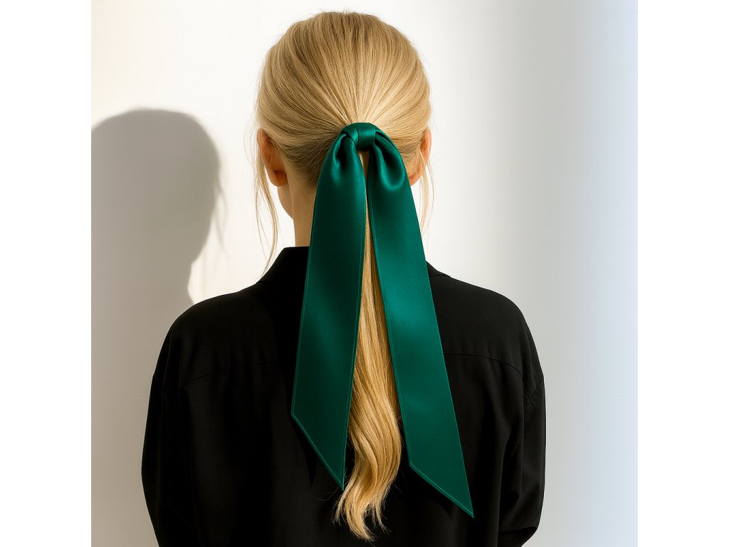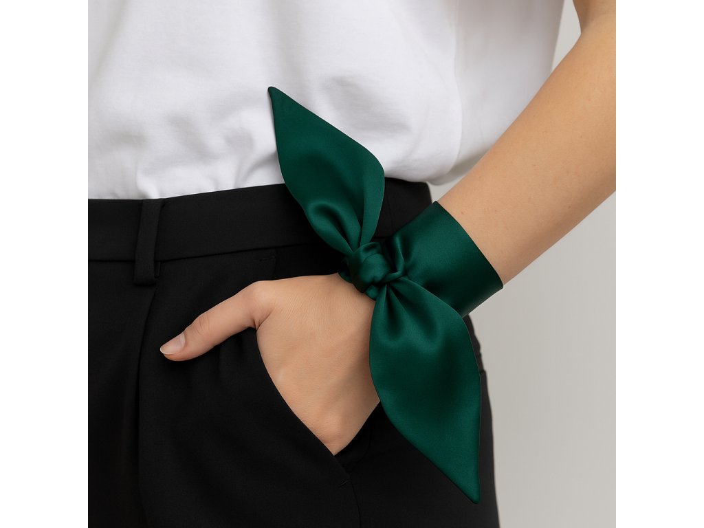 Twilly šátek z 100% bavlněného saténu – Emerald smaragdový Twilly šátek z bavlněného saténu – smaragdový | Elegantní doplněk pro vlasy, kabelku i outfit